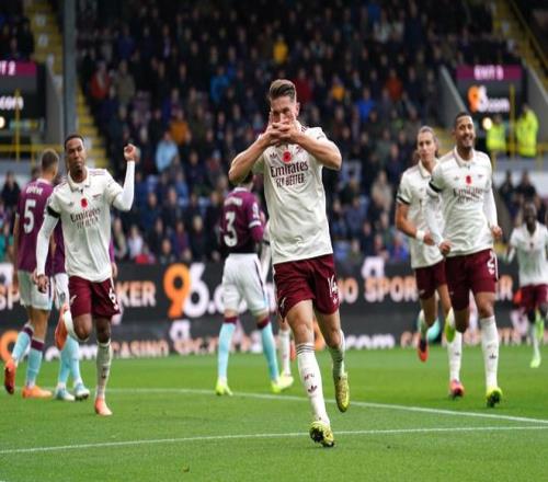 雷速体育11月2日宣 英超联赛第10轮,阿森纳客场2-0战胜伯恩利,哲凯赖什首开记录,赖斯接应特罗萨德传中头槌破门...